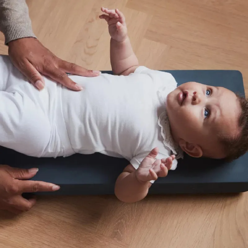 Stimuler både vestibulærsans og muskelledsans når den lille ligger på maven på Tumlebræt og spænder op i hele kroppen af begejstring og eventyrsglæde.