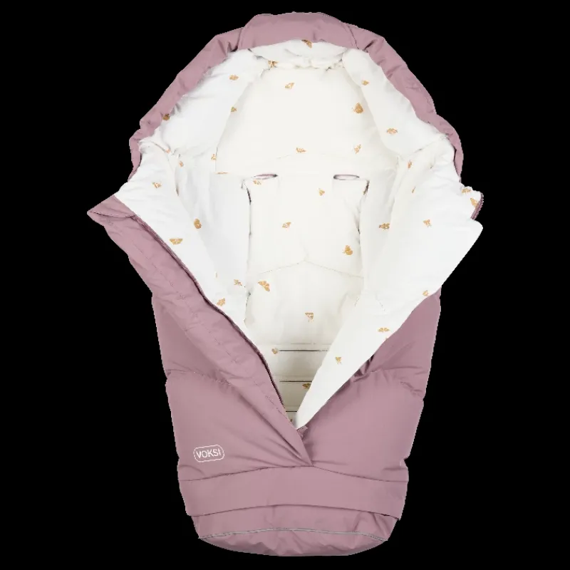 Køreposen består af naturlige og kvalitetssikre materialer som uld og dun. Voksi City North har uld i ryggen, som temperaturregulerer og sørger for at barnet holdes tørt. Fyldet er af højkvalitetsdun og posen er syet med en unik bokskonstruktion, der forhindrer kulde i at slippe ind. Det er luften mellem dunfibrene som giver maksimal isolering og holder barnet varmt i det kolde vejr.
