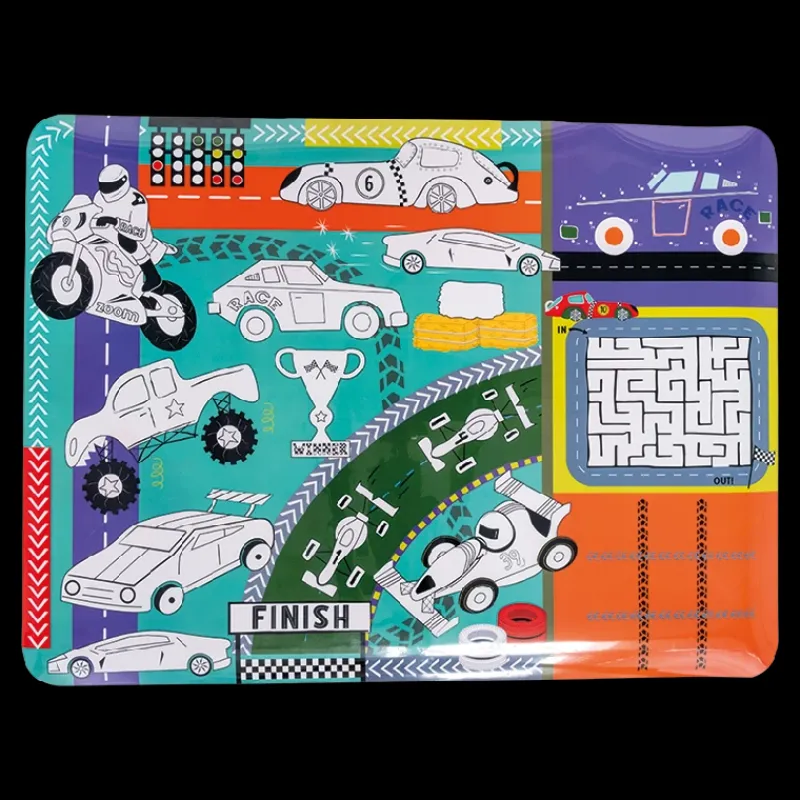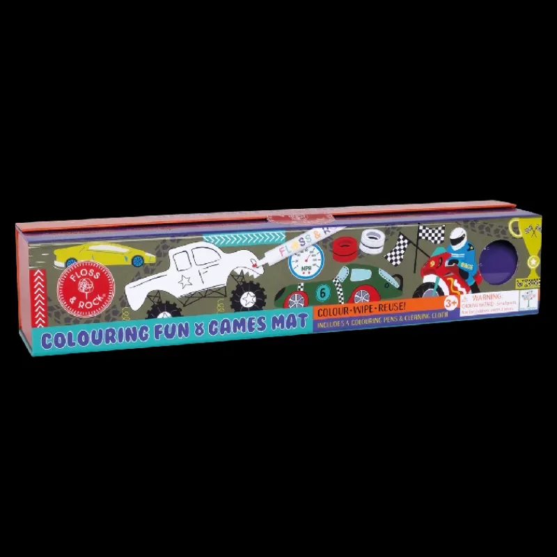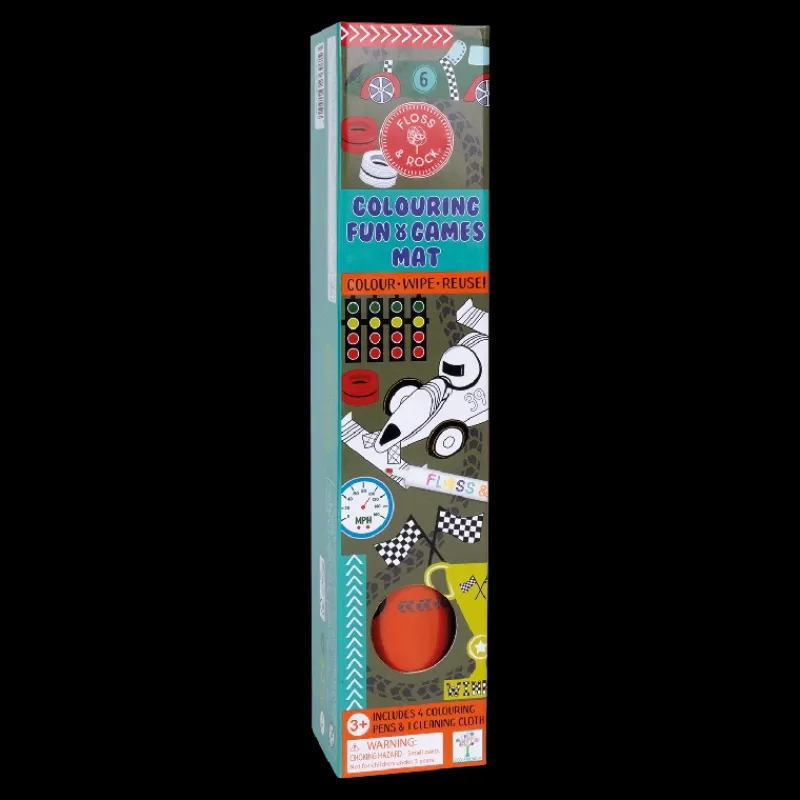 Floss & Rock´s helt nye Male og tegne måtte er en genial multi-play-aktivitet til rejsen. Rul blot måtten ud til farvelægning, prik-til-prik, og labyrint. Når du er færdig, tørrer du måtten af, ruller den sammen og bruger båndet til at pakke den ned i den praktiske æske, så den kan bruges igen og igen! Måtten indeholder 4 farvede penne, en praktisk rengøringsklud, et spændebånd og en genanvendelig opbevaringsboks. Genial til at have med på farten.