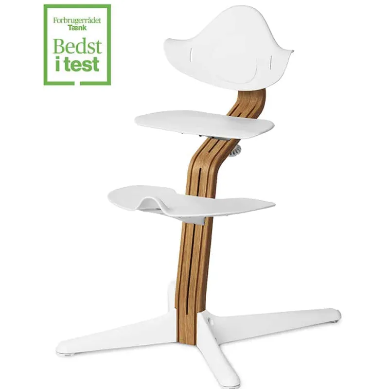 Når barnet selv kan kravle op og ned, tages Nomi Mini af. Sæde og fodplade justeres trinløst i takt med, at barnet vokser. Stammens form sikrer, at dybden på sæde og fodplade automatisk tilpasses. Den åbne konstruktion inspirerer til fri bevægelse og gør det nemt for barnet at komme op og ned, samt trække sig ind og ud fra bordet.