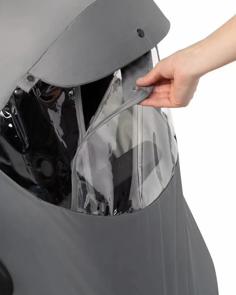 Lad det regne, lad det sne du og din baby har steder at tage hen. Joolz Hub2 regnslag passer perfekt til både sædet og liften, og holder dit barn og barnevogn tørre. Det gennemsigtige vindue lader din baby kigge ud på verden, og der er en lille åbning, så du kan give dem en legeting eller en snack for maksimal underholdning. Regnslaget har en vandafvisende coating og tørrer utroligt hurtigt, så du kan folde det sammen og lægge det væk, kort efter regnen stopper.