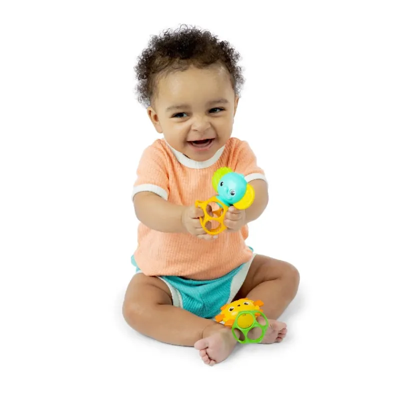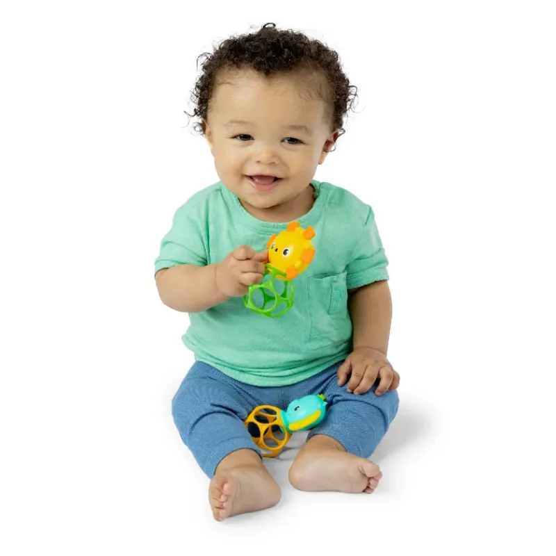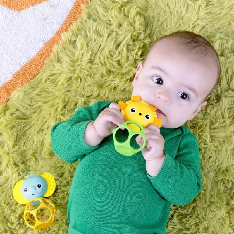 Velkommen til junglen! Dette sæt med bidelegetøj indeholder en løve og en elefant, der hjælper med at lindre ømme gummer. Bright Starts’ fleksible og holdbare Oball-teknologi, gør legetøjet særligt nemt at gribe for din lille baby, og et spejl og raslende kugler gør legesættet ekstra sjovt!