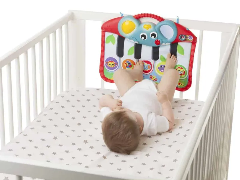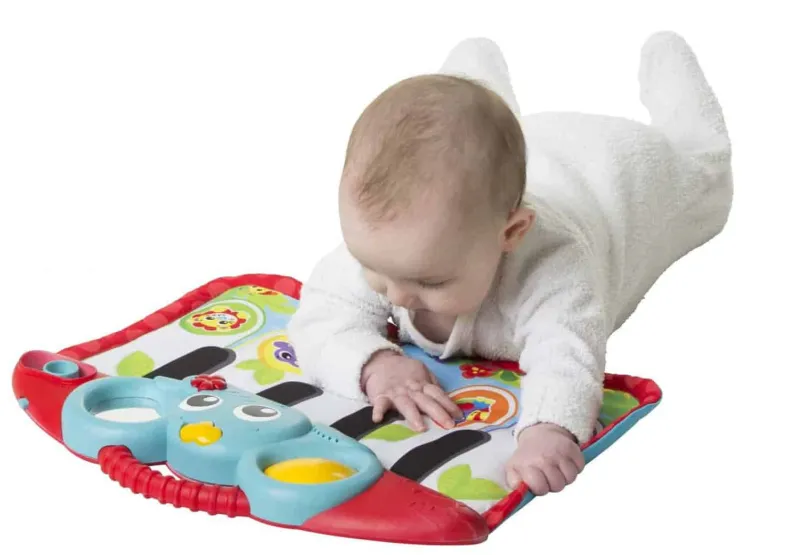 Musikalsk aktivitetsmåtte til dit spædbarn der kan bruges både til at trykke på eller til at hænge op, feks. i tremmesenge eller kravlegården, så barnet kan sparke tonerne igang med fødderne. Måtten lyser også op, og stimulerer herved både barnets høre- og synssanser samt koordineringsevner.