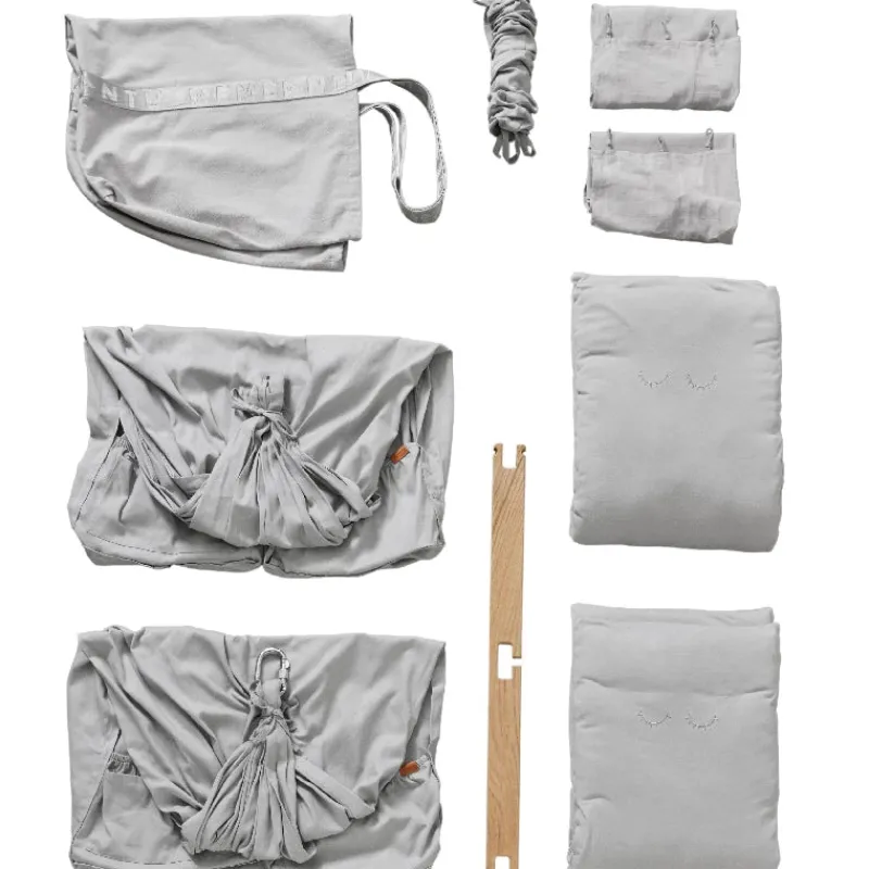 Slyngevuggen kommer i en økologisk bomulds stofpose, som gøre den nem at transportere.