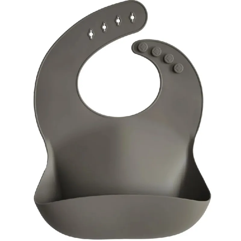 Hold din lille guldklump ren og komfortabel med Mushies silikone hagesmæk i et tidløst, minimalistisk design, der kombinerer funktionalitet med elegance.