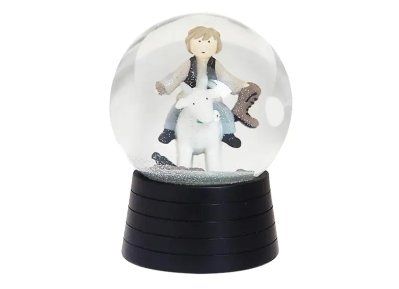 Kids By Friis Snekugle Med Musik – Klodshans. Sød snekugle med sort bund med striber. Inde i snekuglen kommer den kendt H. C. Andersen karakter, Klods Hans, riddende på en ged. I kuglen er også Klods Hans’ tre gaver til prinsessen. Støvlen har han i hånden, mens kragen ligger på jorden ovenpå pludder.