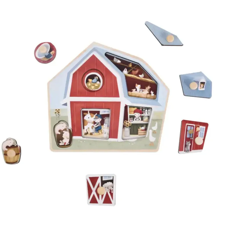 Træpuslespil er så sjove – og de holder også længe. Dette puslespil, formet som en lade, er perfekt til bondegårdsentusiaster. Skab en hyggestund hvor du hjælper dit barn med at få alle puslebrikkerne til at passe sammen. Puslespillet indeholder 6 brikker.
