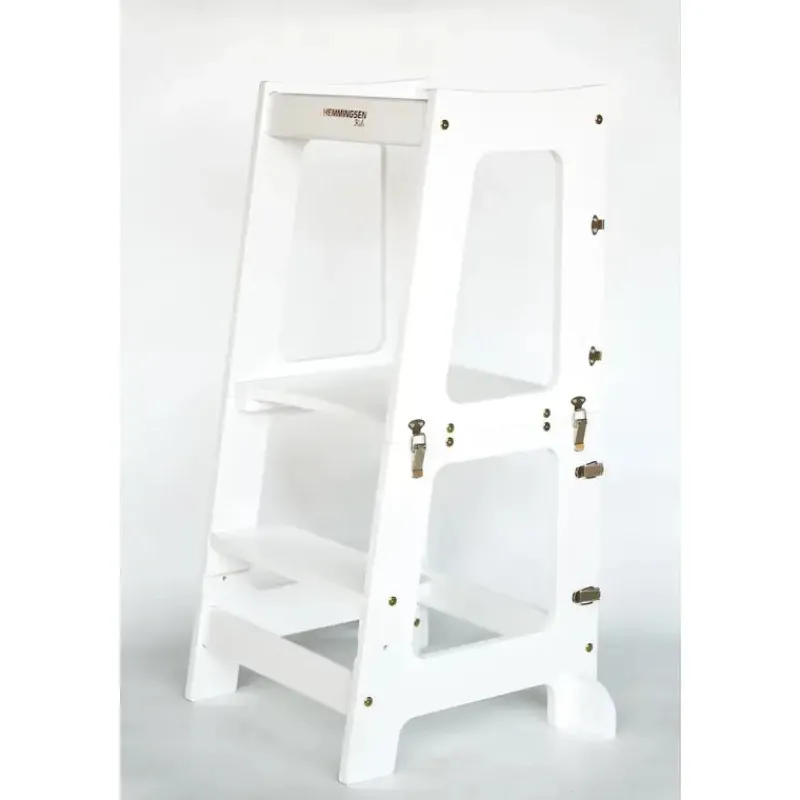 Hemmingsen Kids Maya Læringstårn Hvid er velegnet til børn i aldersgruppen 1-6 år. Tårnet er designet af Hemmingsen Kids ejer, Nina Liv Olesen, og har fået sit navn efter hendes datter, Maja. Det sammenklappelige læringstårn er skabt af miljøvenligt og holdbart birketræ, og det egner sig perfekt til at stimulere og underholde børn, mens du f.eks. laver mad, ordner vasketøj eller udfører andre praktiske opgaver, der kræver en smule fokus.