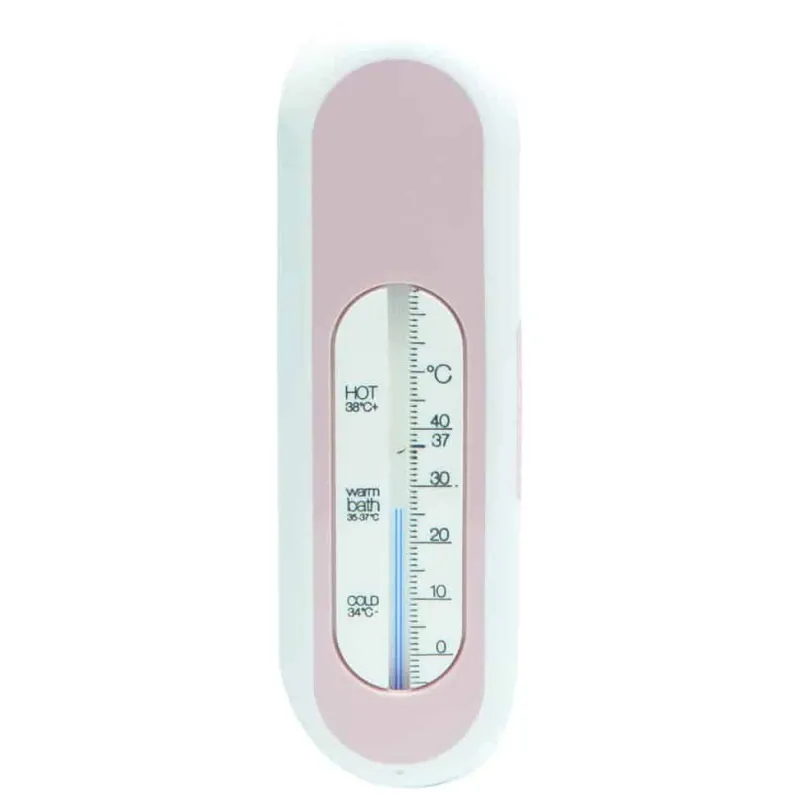 Bade – termometer, Mellow Rose. Dette termometer er meget præcist. Den ideelle temperatur på badevandet til den nyfødte er 37 grader, som også er markeret med små pile på termometret.
