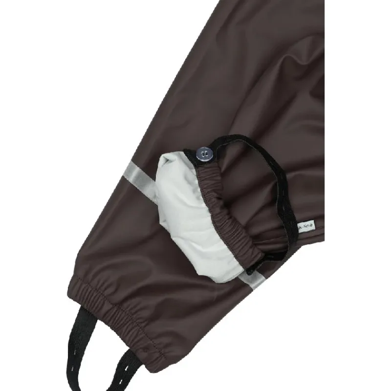 - De justerbare fodstropper kan sættes under gummistøvlerne, så bukserne bliver siddende, og fødderne forbliver tørre. Med et praktisk navneskilt med plads til flere navne kan regntøjet gives videre, så det får nyt liv hos endnu et barn.