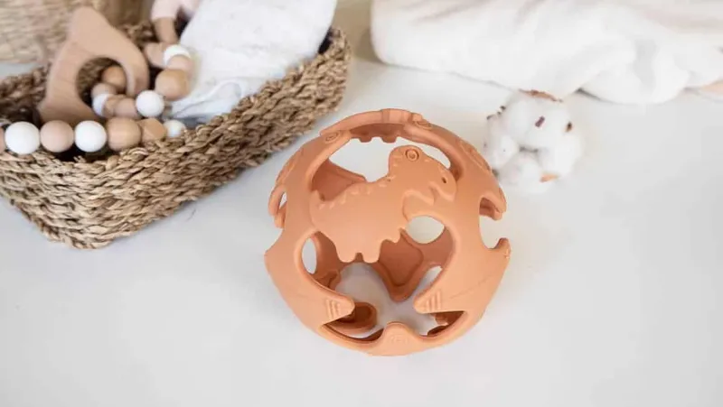 Bold produceret af 100% fødevaregodkendt silikone. Fleksibel og nem at gribe fat om. 4 dinosaurer gør bolden sjov at undersøge, og stimulerer baby’s føle og synssans. Blød silikone gør den behagelig at lege med, og masserer nænsomt babys ømme gummer under tandfrembrud. Egnet fra 4 mdr.