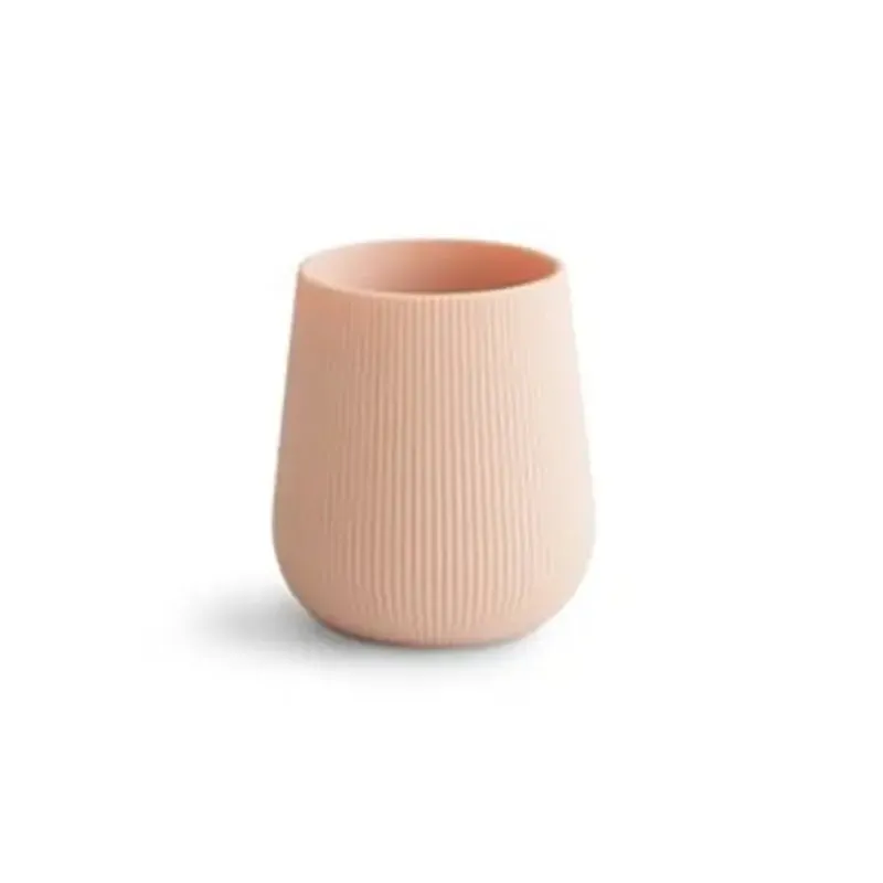 Koppen er designet med en ribbet yderside, der sikrer et skridsikkert greb, så dit barn trygt kan udforske nye drikkefærdigheder. Den tunge base holder koppen stabil på bordet, mens det bløde, fødevaregodkendte silikone-materiale er skånsomt mod både ømme gummer og nye tænder.