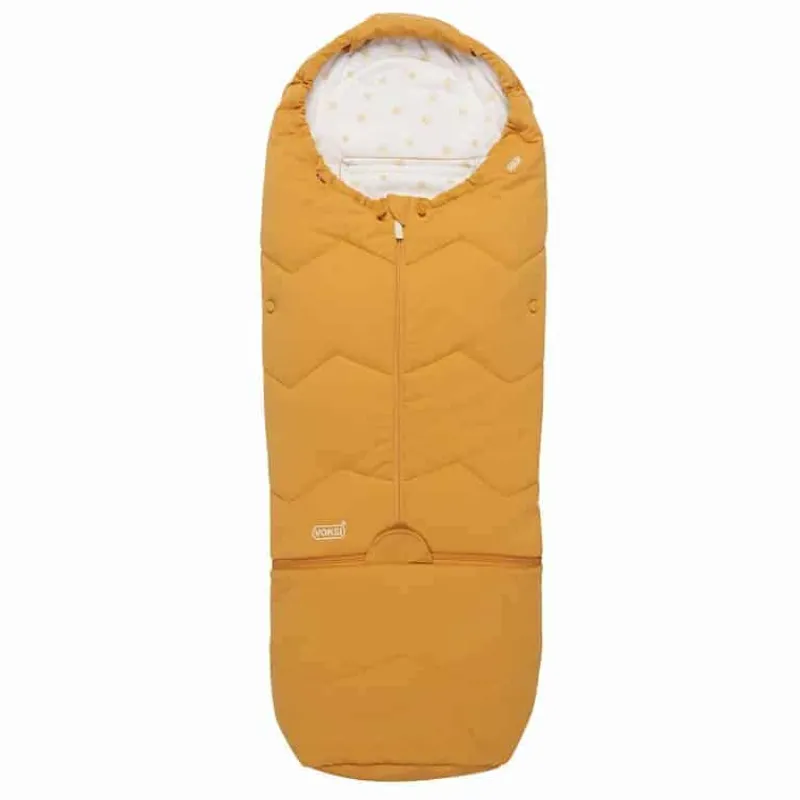 Voksi® Sky Light har en inderside af blødt bomuld og er fyldt med et tyndt lag af genindvunden polyester. Køreposen leveres med en forlængerdel, der betyder, at den kan bruges i mange år.