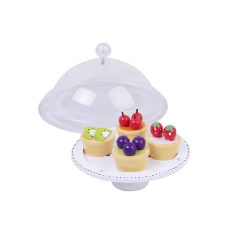 Mamamemo Tærter på fad m/låg, lækre tærter serveret på et hvidt fad med blåt mønster. Derudover medfølger et låg lavet i acryl.