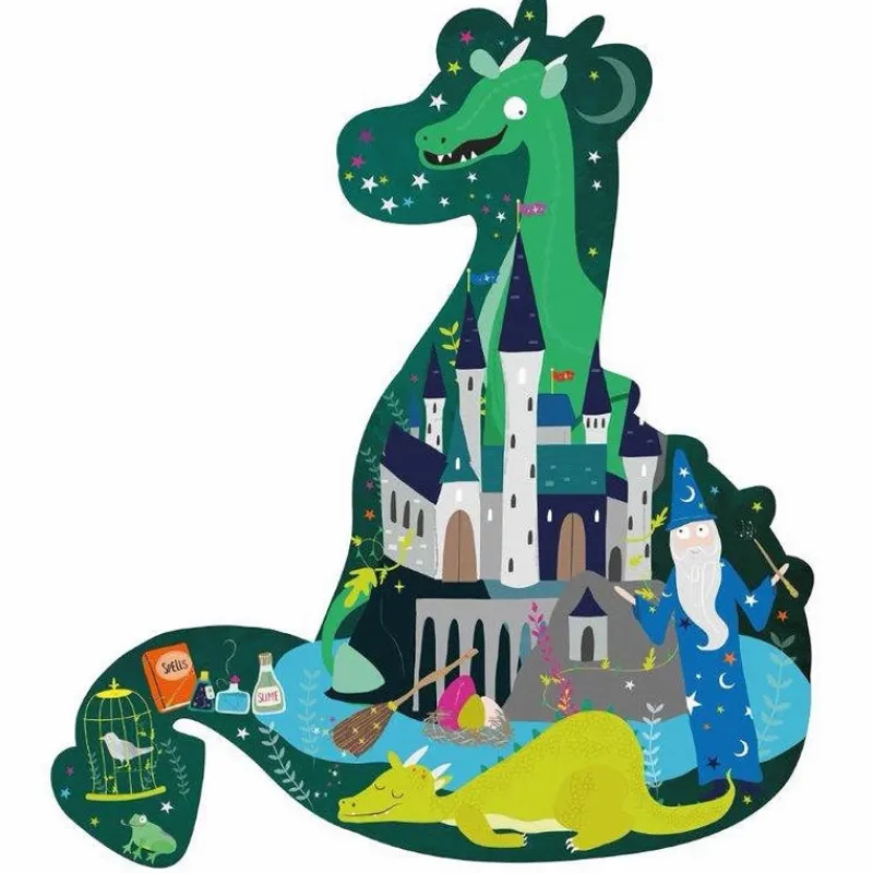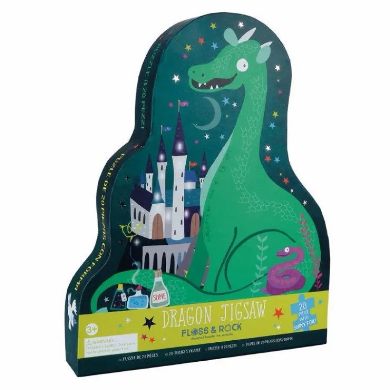 Puslespillet er formet som en tosset drage, og det er den smukke gaveæske også. 20 brikker med flotte skinnende folierede detaljer.