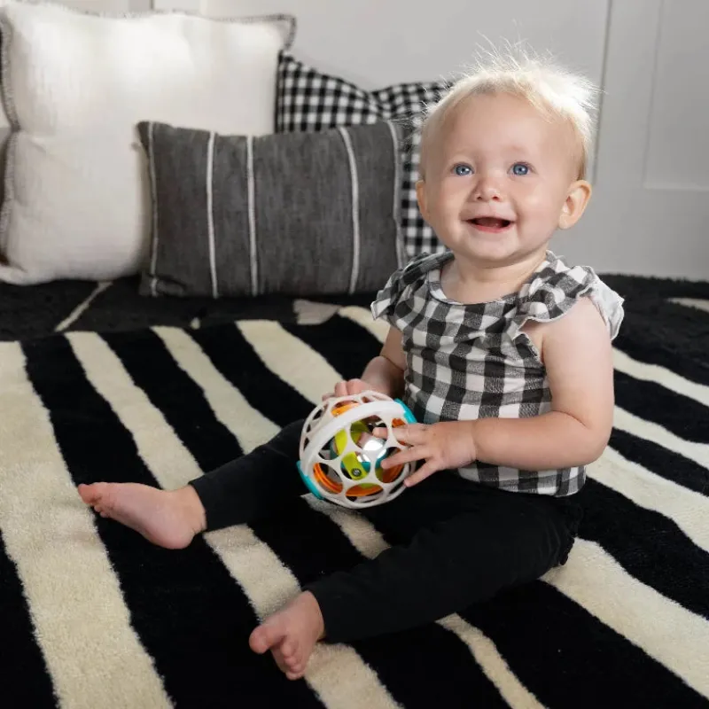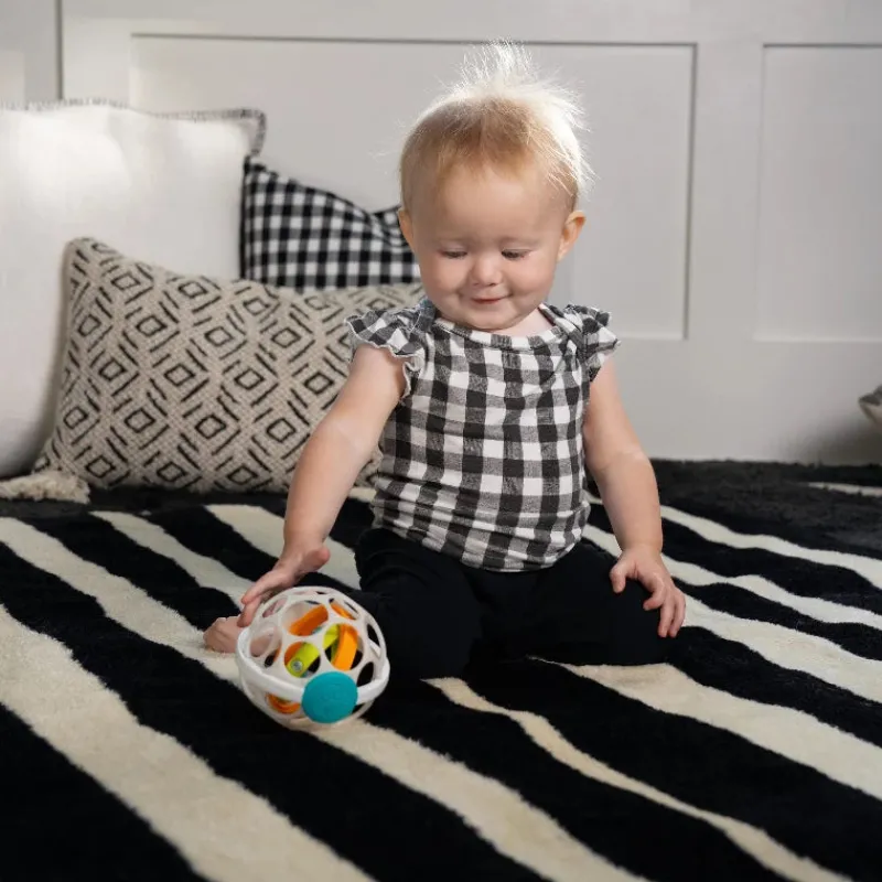 Spædbørn og småbørn vil elske at klemme og gribe fat i den fleksible Oballs eller ryste og rulle bolden for at høre raslelydene.