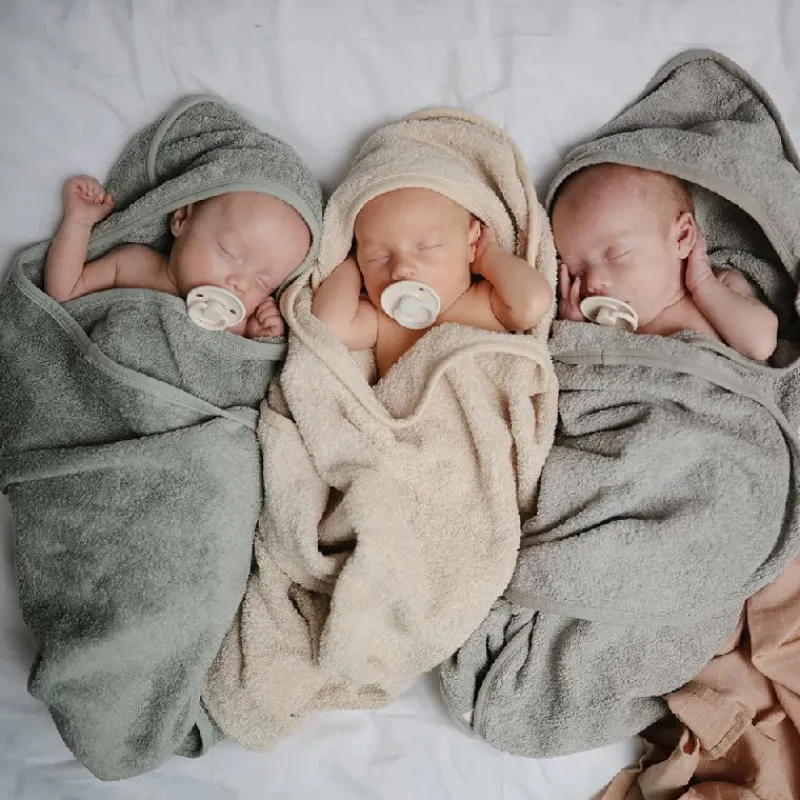 Håndklæde med hætte i 100% økologisk bomuld perfekt til hyggelige og trygge kram efter badet.