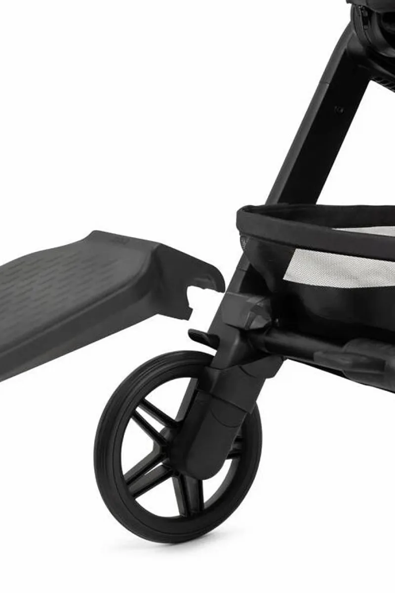 Det perfekte tilbehør til forældre, der er ude med to børn. Fastgør klipsen omkring stellet, og så er du klar. Tilføj fodbrættet til din Hub2-barnevogn med et enkelt klik, og din tumling er klar til at trille med, hvad enten de står eller sidder. Tid til at løbe videre efter en pause på farten? Bare slå fodbrættet op, og gå side om side.