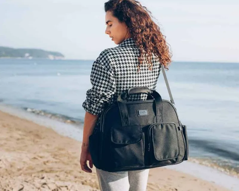 Den stilfulde pusletaske er lavet i slidstærke tekstiler af høj kvalitet, og kan fortsat bruges som pusletaske/weekendtaske efter baby er vokset ud af sengesektionen.