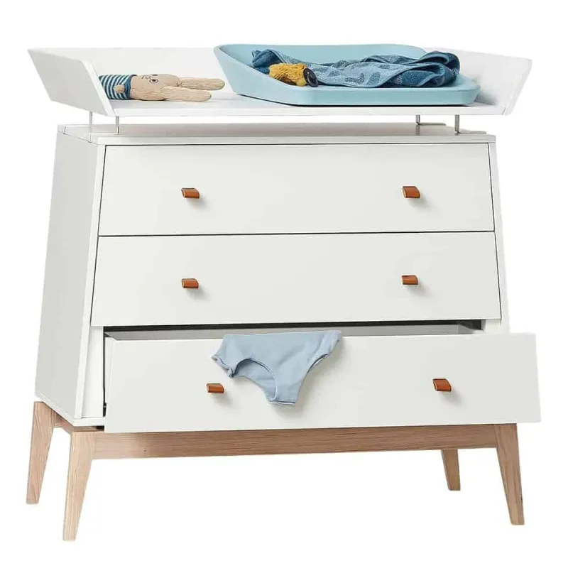 Når en lille ny bliver født, får du brug for en god pusleplads. Leander Luna™-pusleenheden er skabt som et smukt tilbehør til Leander Luna™-kommoden. Designet er let og svævende og indbyder til nærvær mellem barn og voksen.