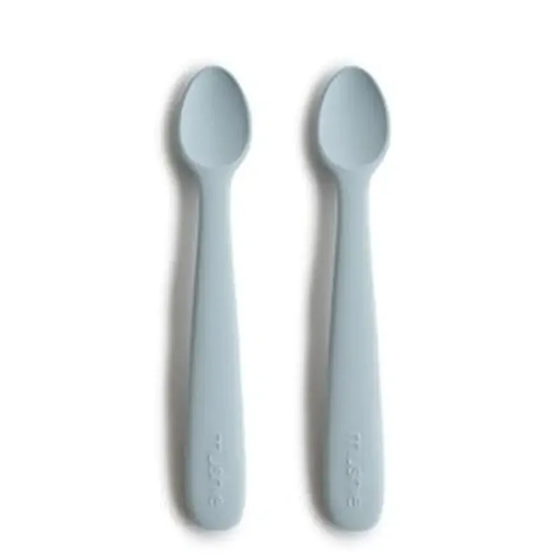 Giv din baby en tryg og komfortabel start på fast føde med Mushies babyskeer. Skeerne er designet med et langt skaft og et lille hoved, der gør det nemt og præcist at føre maden ind i den lille babymund.
