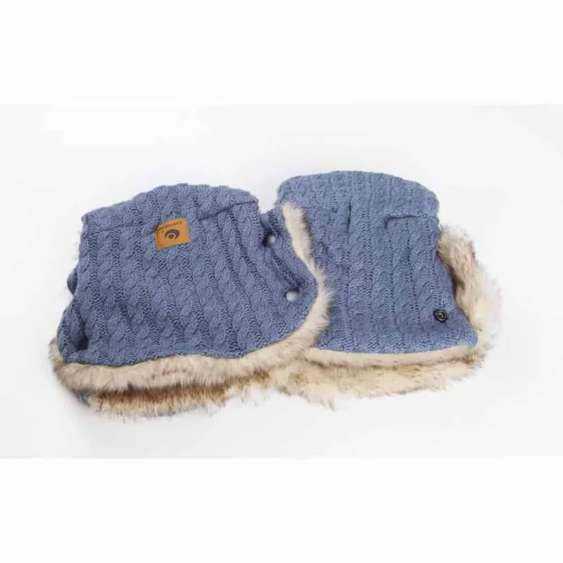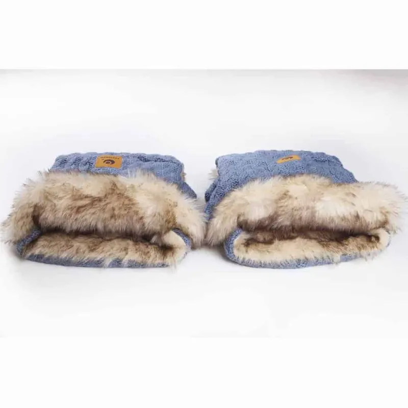 Herlige håndmuffer i samme materiale som vinterposerne, foret med kunstpels. Til kolde dage på trilletur. Mufferne kan kobles sammen, så de kan bruges både enkeltvis eller dobbelt.