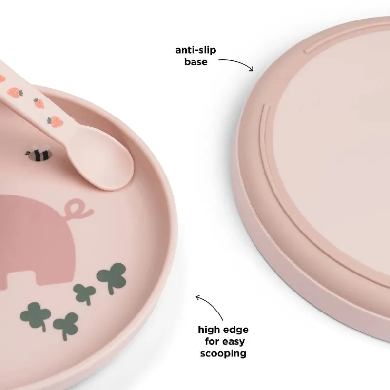 En praktisk antiskrid-base sikrer, at tallerkenen bliver på sin plads under måltidet