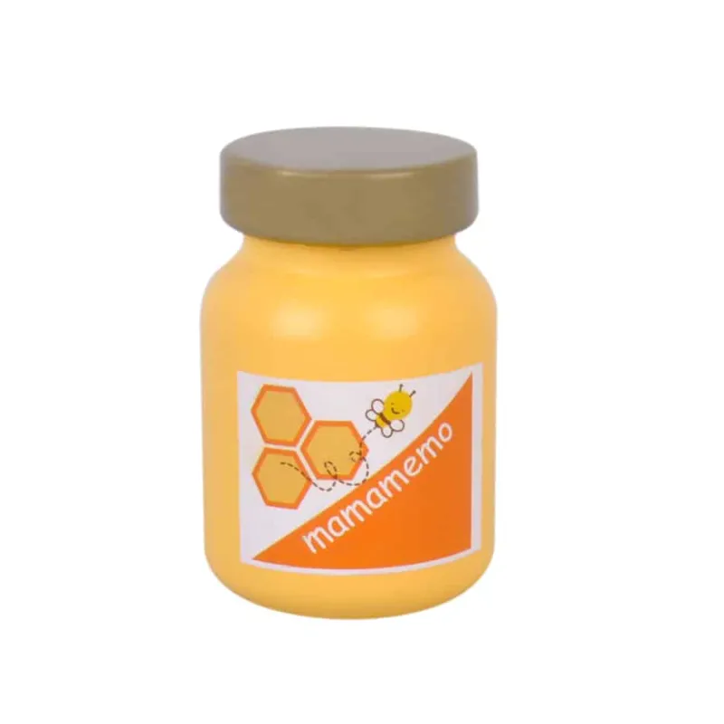 Mamamemo Honning kan bruges til te, på brød og mange andre ting. Derfor skal børn naturligvis også have det i deres legekøkken. Mamamemo har lavet et Honningglas i træ.