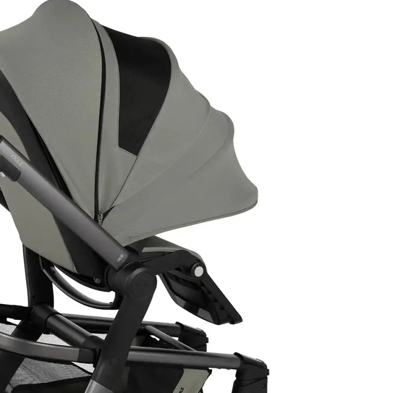 Hub+ er udstyret med XXL-kaleche (UPF50+), der sikrer mod sol, vind og vejr. Klapvognssædet kan vendes så barnet kigger ind mod føreren af klapvogn eller ud mod verdenen. Ryggen og fodstøtten har 3 indstillinger hver især, så klapvognssædet nemt kan indstilles efter barnets behov. Sædet kan f.eks. indstilles til en næsten komplet lie-flat position hvilket gør at barnet kan ligge ned og sove på de 90cm som klapvognsædet måler når det er lagt helt ned.