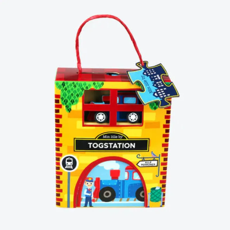 Min lille by Junior er en æske med et spændende legesæt, der giver barnet mulighed for at udforske og lære på en sjov og interaktiv måde. Alle legesættene kan sættes sammen, så læringsoplevelsen bliver endnu bedre, og barnet kan fortælle sine helt egne historier ud fra det, det leger med. I æsken finder du en sød og farverig bog om tog, et robust trætog, et puslespil samt flere legeområder, hvor æskerne kan bruges som små bygninger i legen. En stor fordel er, at emballagen er miljøvenlig og helt fri for plastik, hvilket gør produktet bæredygtigt og sikkert for børn.