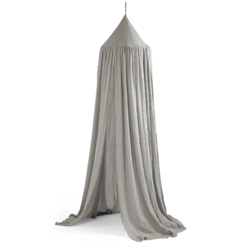 Vågner dit barn tidligt, som i alt for tidligt, f.eks. pga. morgensol, så kan en sengehimmel også biddrage til at gøre sengeomgivelserne lidt mørkere. Det smukke stof er monteret på en metalbøjle med et kryds, hvorfra der eksempelvis kan hænges en uro eller drømmefanger. Stoffet kan nemt tages af metalbøjlen og vaskes ved 40 grader. En strop i toppen af sengehimlen gør det let at hænge den ned fra en fastmonteret krog i loftet.