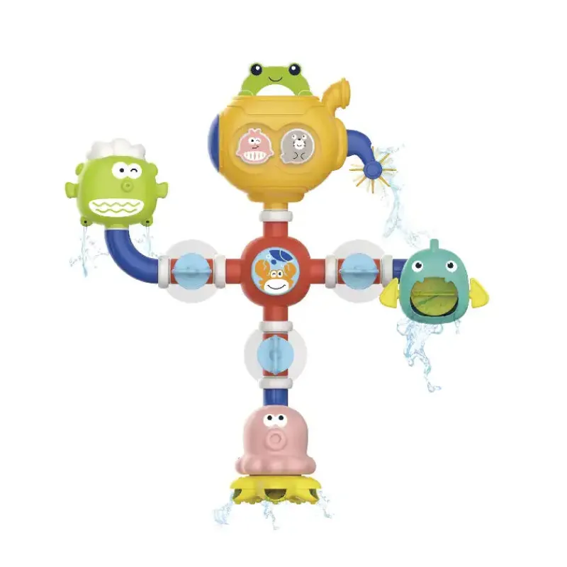 Skab sjove stunder i badet med badelegetøj med havtema. Dette søde sæt inkluderer elskede havdyr som en blæksprutte, en fisk og en krabbe, der bringer leg og glæde til badestunden. Legetøjet kan let fastgøres til fliser ved hjælp af sugekopper, og børnene kan udforske vandets bevægelser gennem små møller og huller.