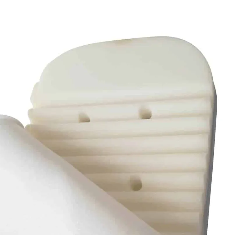 Madrassen er en fast skummix, som følger kroppen, så barnet ligger komfortabelt, samtidig med en fasthed så den støtter barnets krop. Madrassen har luftkanaler og lufthuller, som sikrer en god luftcirkulation. Madrasbetrækket er 3D net af 100% polyester, Oeko-Tex certificeret, som sikrer fuld åndbarhed, samtidig med støvmider har svært ved at leve i betrækket.