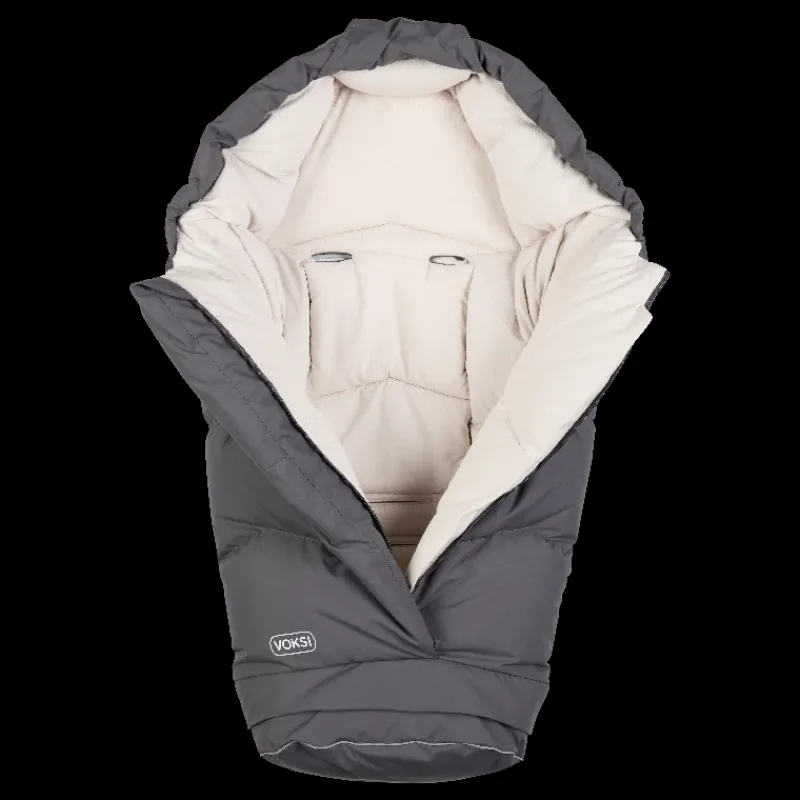 Køreposen består af naturlige og kvalitetssikre materialer som uld og dun. Voksi City North har uld i ryggen, som temperaturregulerer og sørger for at barnet holdes tørt. Fyldet er af højkvalitetsdun og posen er syet med en unik bokskonstruktion, der forhindrer kulde i at slippe ind. Det er luften mellem dunfibrene som giver maksimal isolering og holder barnet varmt i det kolde vejr.