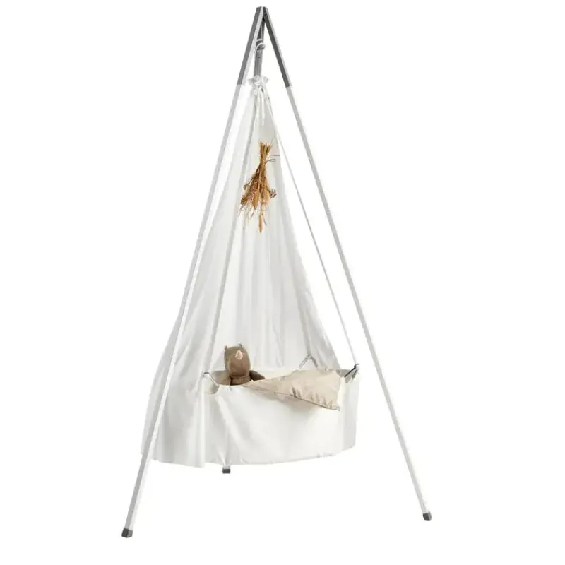 Leander Vugge m. madras og krog, der følger med dit barns bevægelser. Børn leger, eksperimenterer og udforsker omgivelserne. Når børn bevæger sig, stimuleres sanserne og glæden ved at bruge kroppen. Leander vuggen er designet i et tidløst nordisk design, som understøtter dit barns behov for bevægelse. I taburetsædet er indbygget en vippefunktion, der udfordrer og stimulerer barnets balance og motorik. Vælg mellem grå eller hvid.
