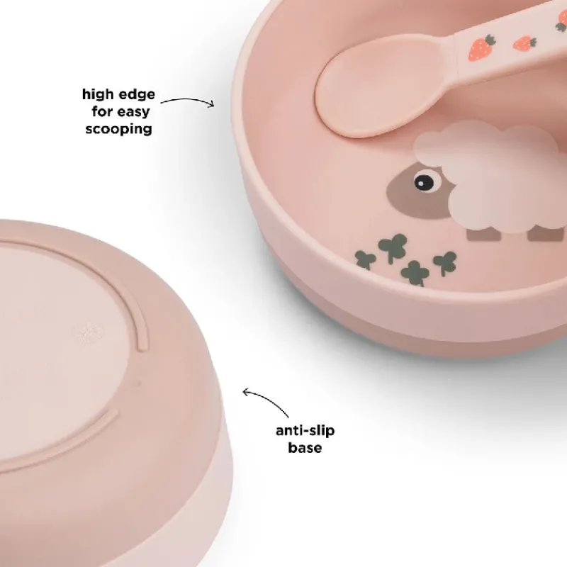 En praktisk antiskrid-base sikrer, at skålen bliver på sin plads under måltidet