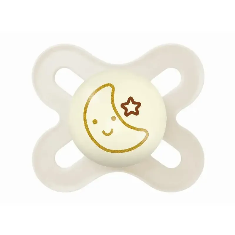 MAM Original Start Night er en ekstra lille og let sut, der passer til de mindste babyer. Sutten er hudvenlig takket være store lufthuller og MAM’s unikke knoppede inderside. Sutten er lavet af silkeblød silikone, MAM Skin SoftTM, som føles blød og velkendt ligesom mors hud og accepteres af 94 % af babyerne*. MAM Start Night leveres i en praktisk opbevarings- og steriliseringsboks, som gør det nemt at sterilisere sutten i mikrobølgeovnen. Med sin selvlysende knop er MAM Original Start Night nem at finde i mørket – for nemmere nætter.