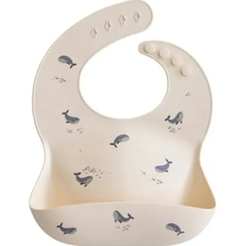 Hold din lille guldklump ren og komfortabel med Mushies silikone hagesmæk i et tidløst, minimalistisk design, der kombinerer funktionalitet med elegance.