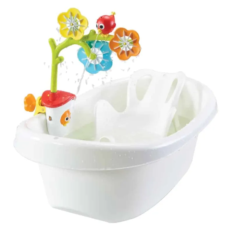 Kan monteres både i baby badet samt i de større børns bad. Udvikler og stimulerer barnets sanser med med den rislende lyd af vand og de forskellige blomsters vandstråler.