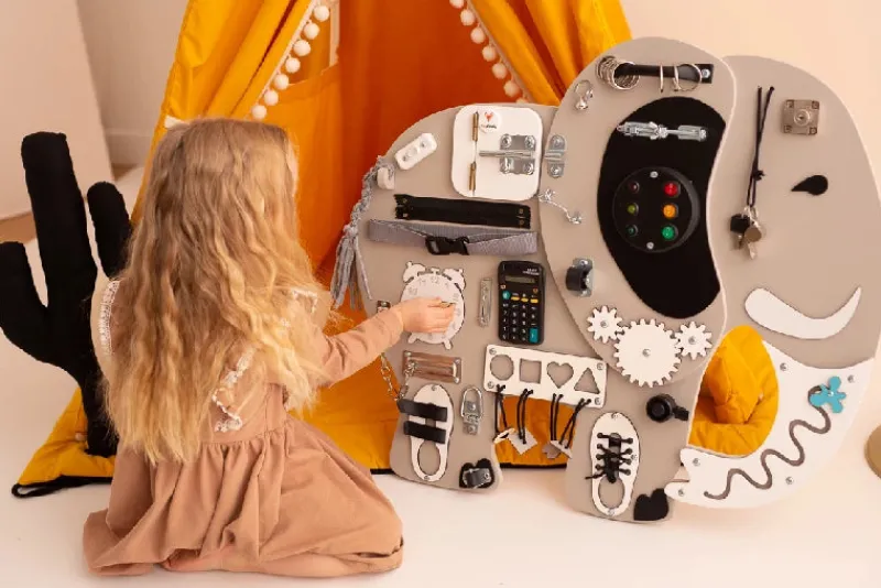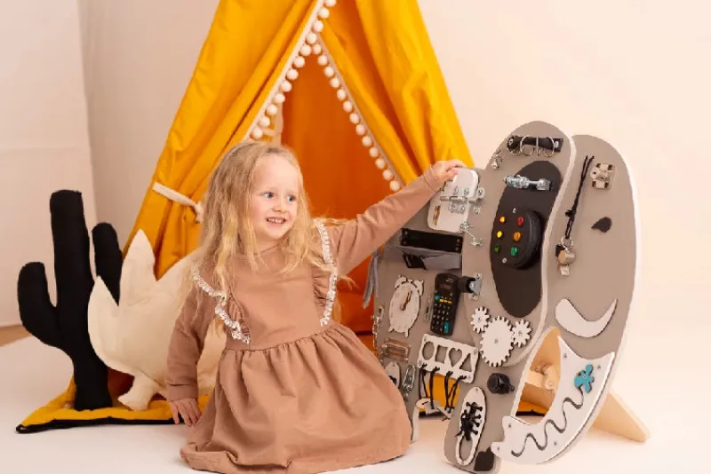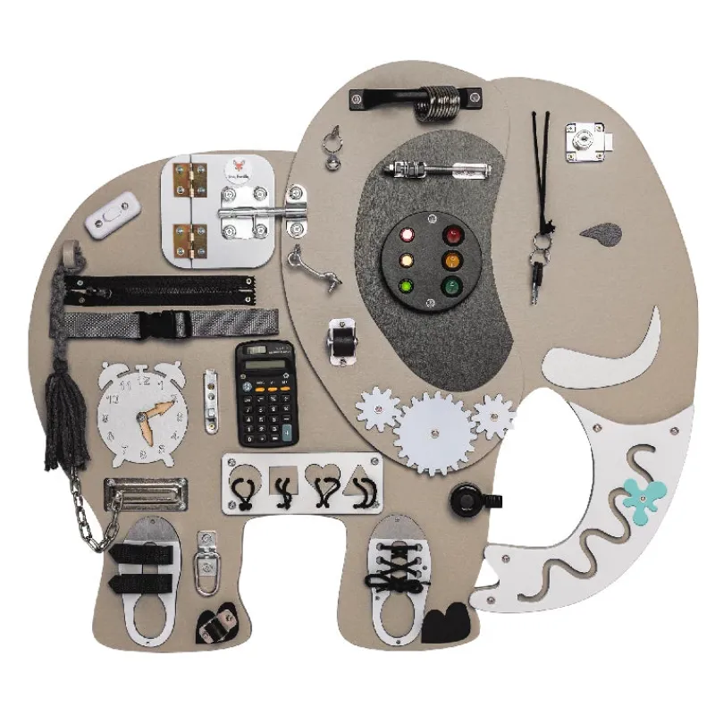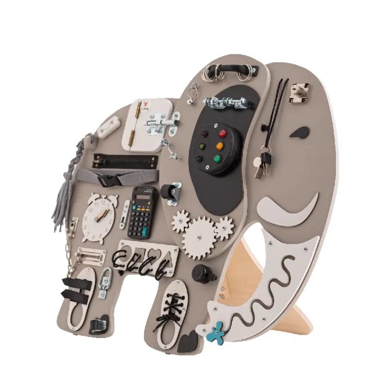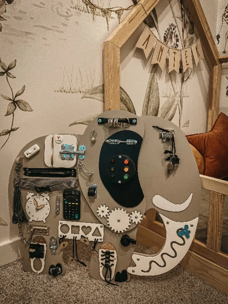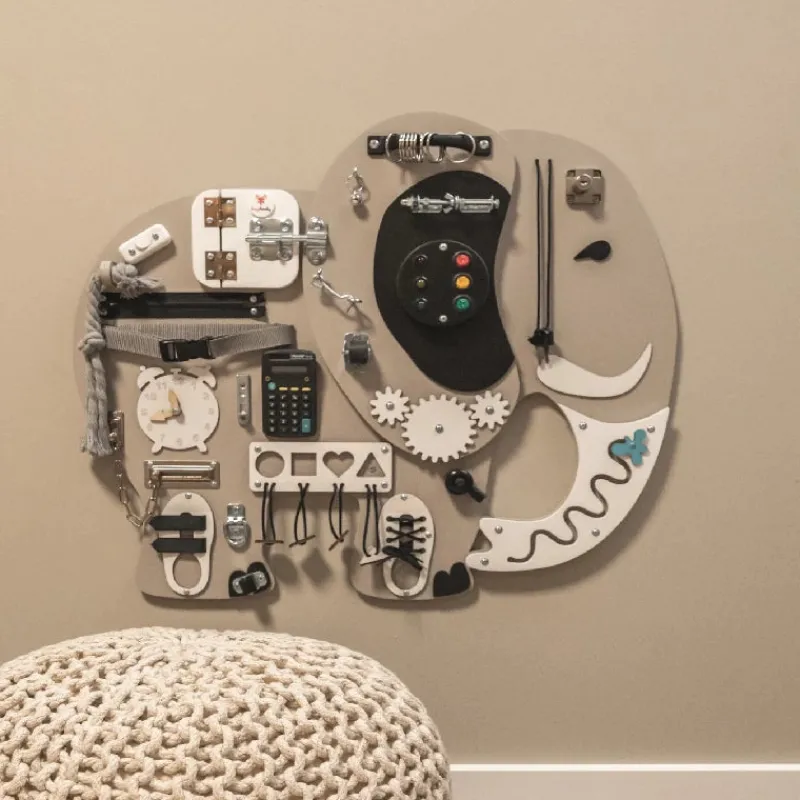 Sjovt og den aktivitetstavle med flest elementer!. Denne model kan både stå frit på gulvet og monteres på væggen.