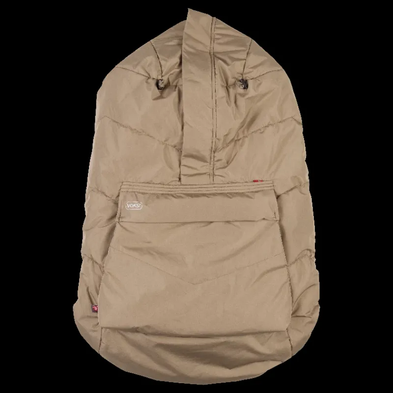Fyldet består af højkvalitets PrimaLoft®-isolering, som er kendt for at være varmt, let og åndbart. I modsætning til dun bevarer PrimaLoft® varmen selv i fugtigt vejr og holder din baby komfortabel i omskifteligt vejr. Ydermaterialet er vindtæt og har et vandsøjletryk på 3000 mm. Det er behandlet med BIONIC-FINISH® ECO, som gør det vandafvisende, uden brug af skadelige kemikalier. Alle materialer i Voksi® Carrier Cover er OEKO-TEX® Standard 100, klasse 1-certificerede og sikre for din babys sarte hud.