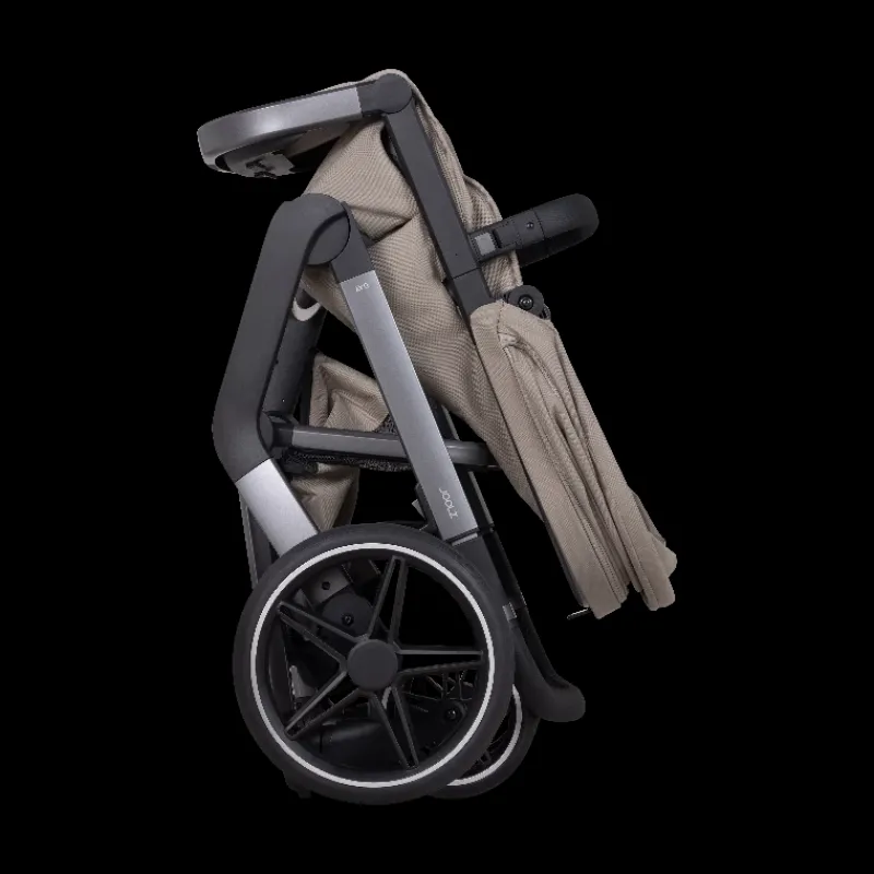 Joolz Day + kører utroligt let takket være det nye lette hjuldesign, og med enhåndsstyring er Joolz Day + let at manøvrere. Day+ har affjedring på alle 4 hjul, så du skal bare nyde turen i byens parker, på brostenene eller lås de drejelige hjul for mere komfort på ujævne veje eller i skoven.
