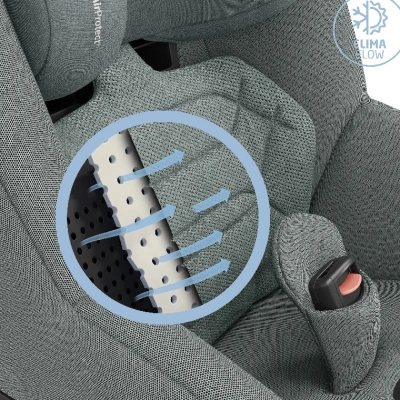 Maxi-Cosi Mica 360 Pro med det revolutionerende Slide-tech teknologi, gør hverdagen nemmere for alle. Ikke mere vrid i kroppen, buler i panden af at slå hovedet ind i dør karmen. Nu kan du trække stolen med barnet ud af døren, så du kan stå i opret position og tage barnet ud af bilen. Mica 360 Pro er udviklet efter de højeste I-Size sikkerhedsstandarter og giver den bedste beskyttelse til dit barn. Mica 360 Pro har patenterede AirProtect®-sikkerhedspuder i nakkestøtten, der beskytter dit barn og reducerer risikoen for hovedskader med op til 20 %. Da 45 % af stødene kommer fra siden, har Mica 360 Pro integreret G-CELL beskyttelse mod sidekollision, som er specielt udviklet til at sprede kræfterne fra et stød væk fra dit barn for at reducere skader, især omkring hoved, nakke og skuldre. Indbygget I stolen er Clima-Flow celler, som sammen med mesh I stoffet sørger for at dit barn altid har den rette temperature I stolen. Med Easu-in selerne er det nemt at monterer barnet I stolen uden bøvl.