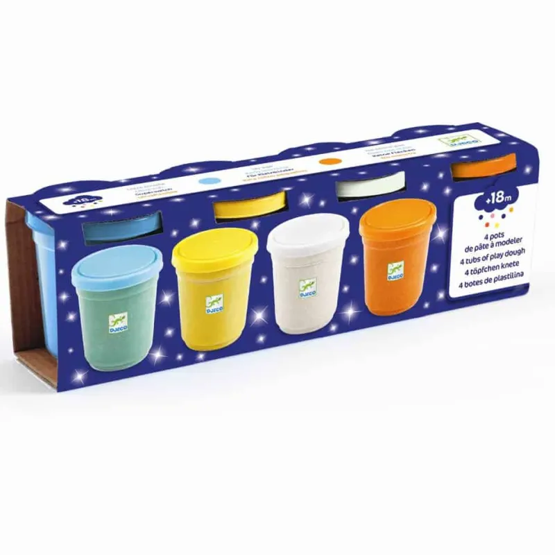 4 bøtter blød modellervoks i flotte glimmer farver.