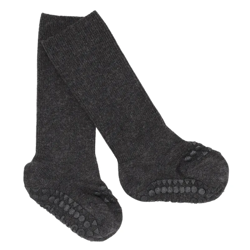 GoBabyGo skridsikre strømper i uld har special designede gummi dutter under fødderne og ovenpå tæerne, så barnet ikke glider når det skal i gang med at lære at kravle og gå.