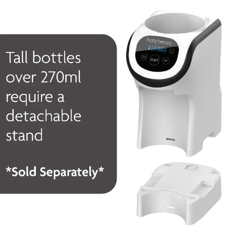 – Fungerer med stort set alle mærker af pulver og alle mærker/typer af flasker (høje flasker, typisk over 260 ml, kræver en lift-up stander, der sælges separat, find den her https://babybrezza.dk/products/formula-pro-mini-forhojningsbas)
