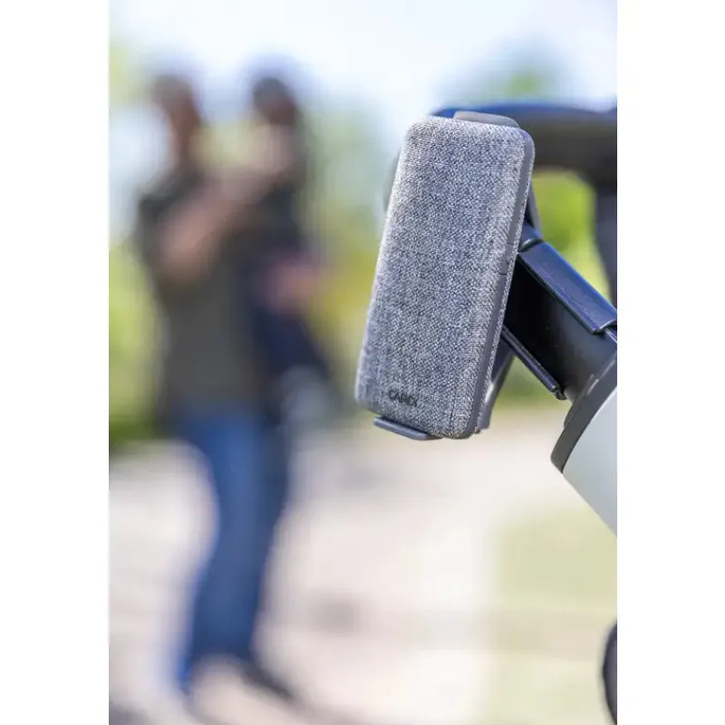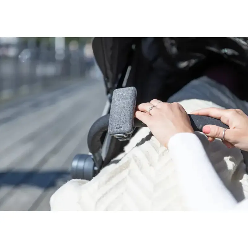 Alsidig bælteclips: Sikker og praktisk fastgørelse med kombineret bælteclips og silikonerem perfekt til barnevogne og tremmesenge.