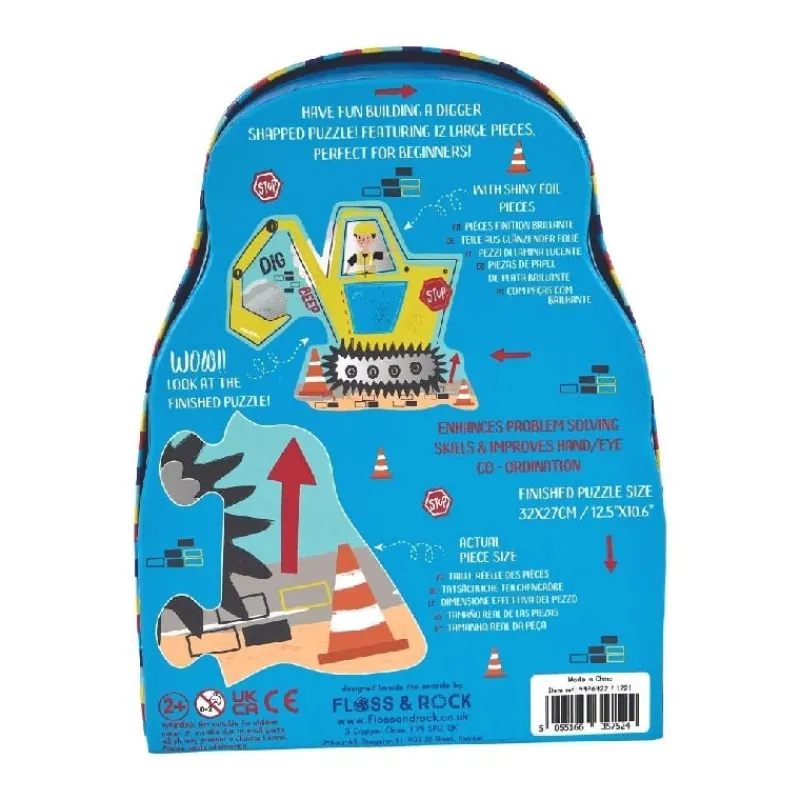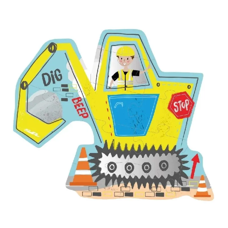 Puslespillet er formet som en super cool gravemaskine, og det er den smukke gaveæske også. Perfekt til de små hænder der er klar til nye udfordringer!