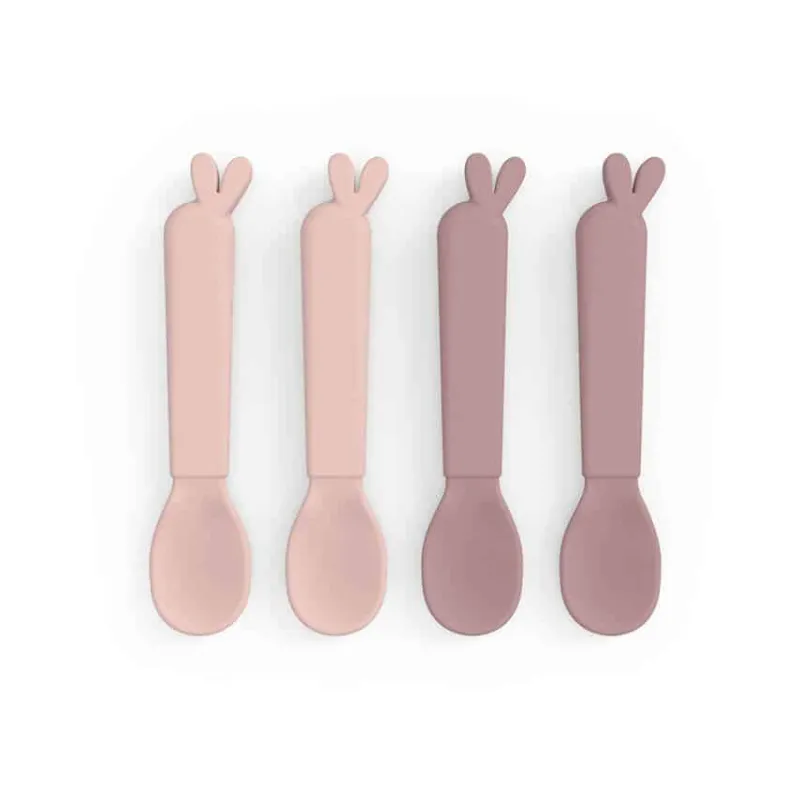 Når det er tid til opstart af skemad, er det med at have rene skeer nok! Med dette sæt af fire sjove Kiddish skeer med Lalee’s ører har vi din ryg. Holdbare skeer, designet til hyggelige spisestunder, der selvfølgelig kan klare opvaskemaskinen. Kiddish børneskeerne er bæredygtige og produceret i Danmark. Efter et langt liv med mos og grød kan skeerne sorteres som hård plast og genanvendes til at skabe nye produkter til hverdagen. En praktisk pakke med fire Kiddish skeer i to nuancer af pudder. Skeerne har en mat, silkeblød overflade, der føles rart for barnet.