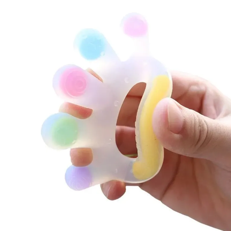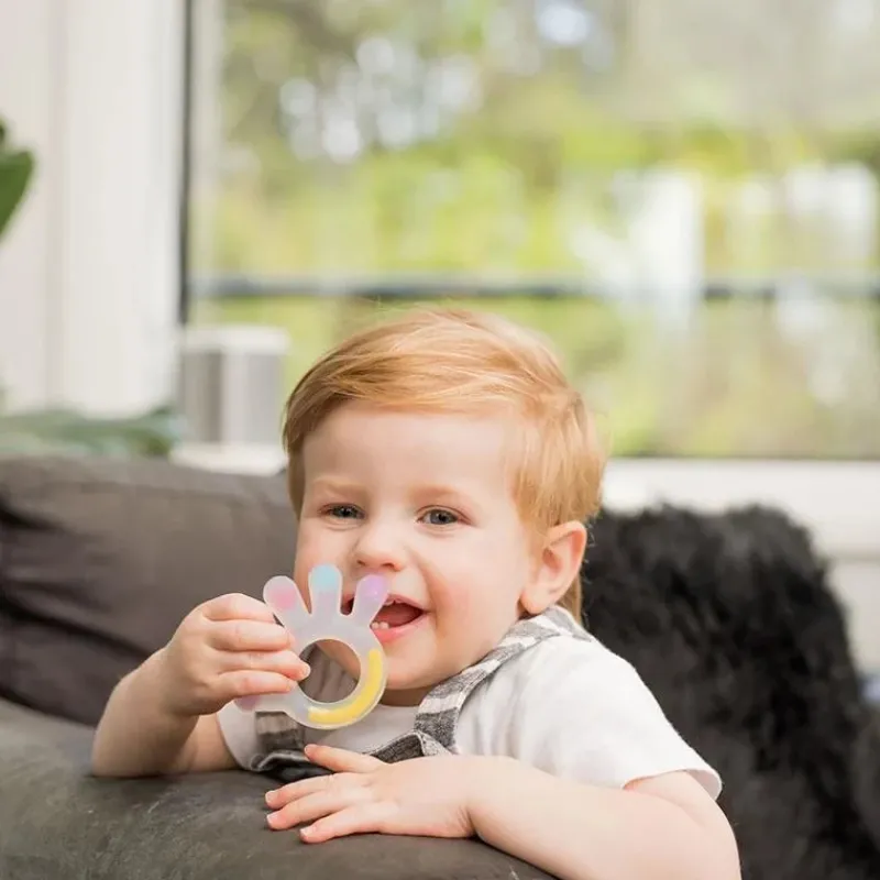 Denne bidering er formet som en hånd, og er det perfekte redskab til de små hvor tænderne presser på og gummerne klør. Den er i en nem-at-holde form og i blødt silikone, der lige er smalt nok til at passe i munden på dit barn, samtidig med det lindre.